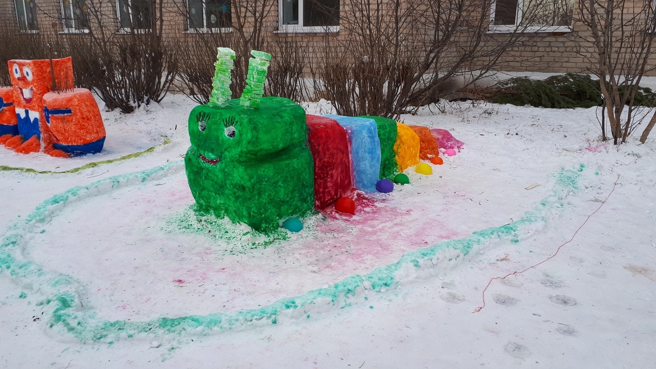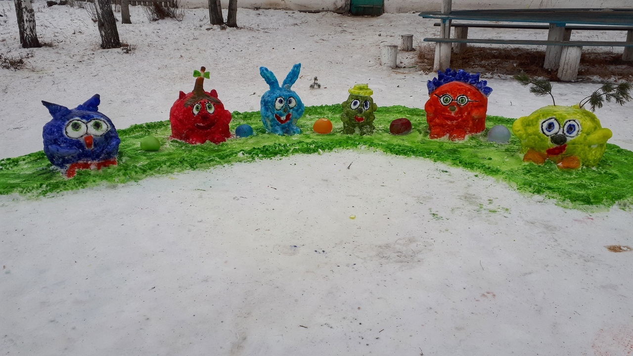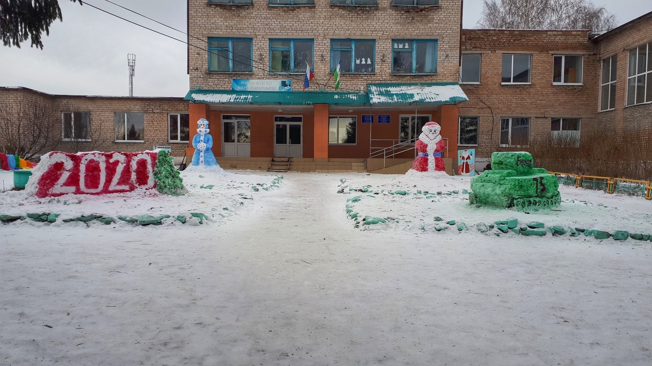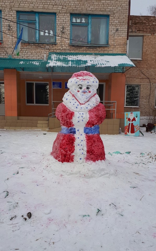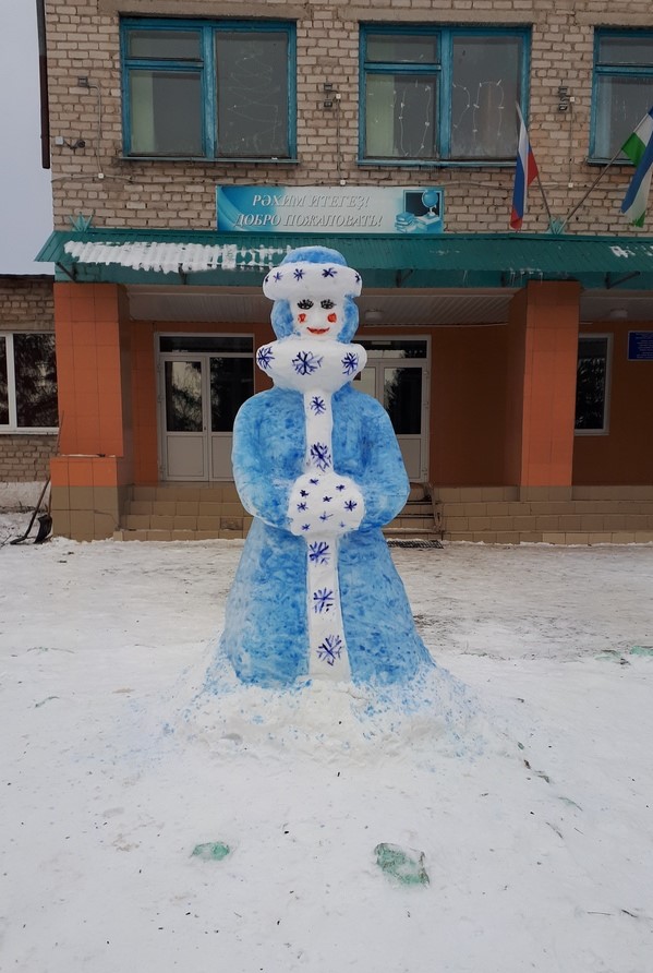 Ҡар әҙ булыуға ҡарамаҫтан, уҡыусылар, уҡытыусылар, ата- әсәләр бергәләп мәктәп алдында ҡарҙан һындар яһап, төрлө сағыу төҫтәргә буяп ҡуйҙылар.