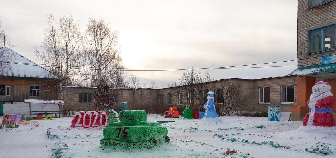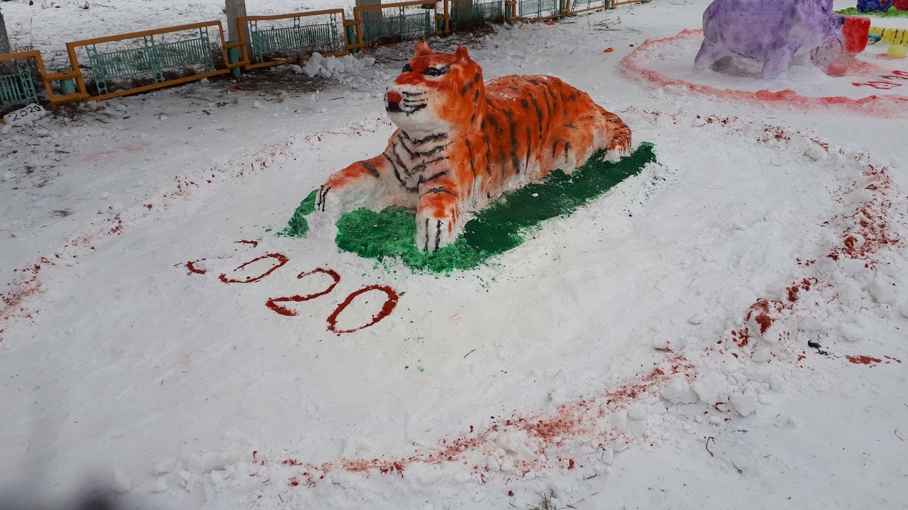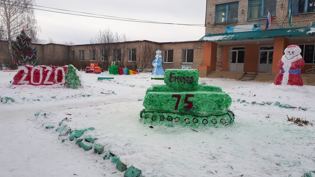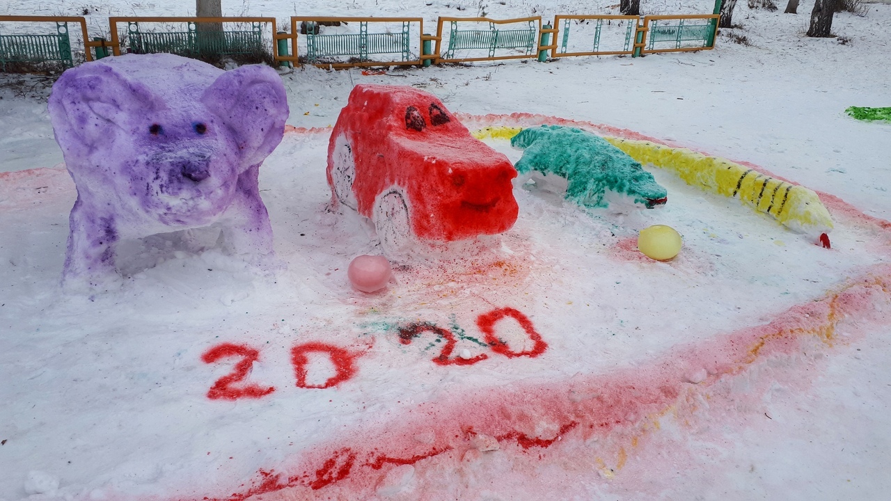 Ҡар әҙ булыуға ҡарамаҫтан, уҡыусылар, уҡытыусылар, ата- әсәләр бергәләп мәктәп алдында ҡарҙан һындар яһап, төрлө сағыу төҫтәргә буяп ҡуйҙылар.