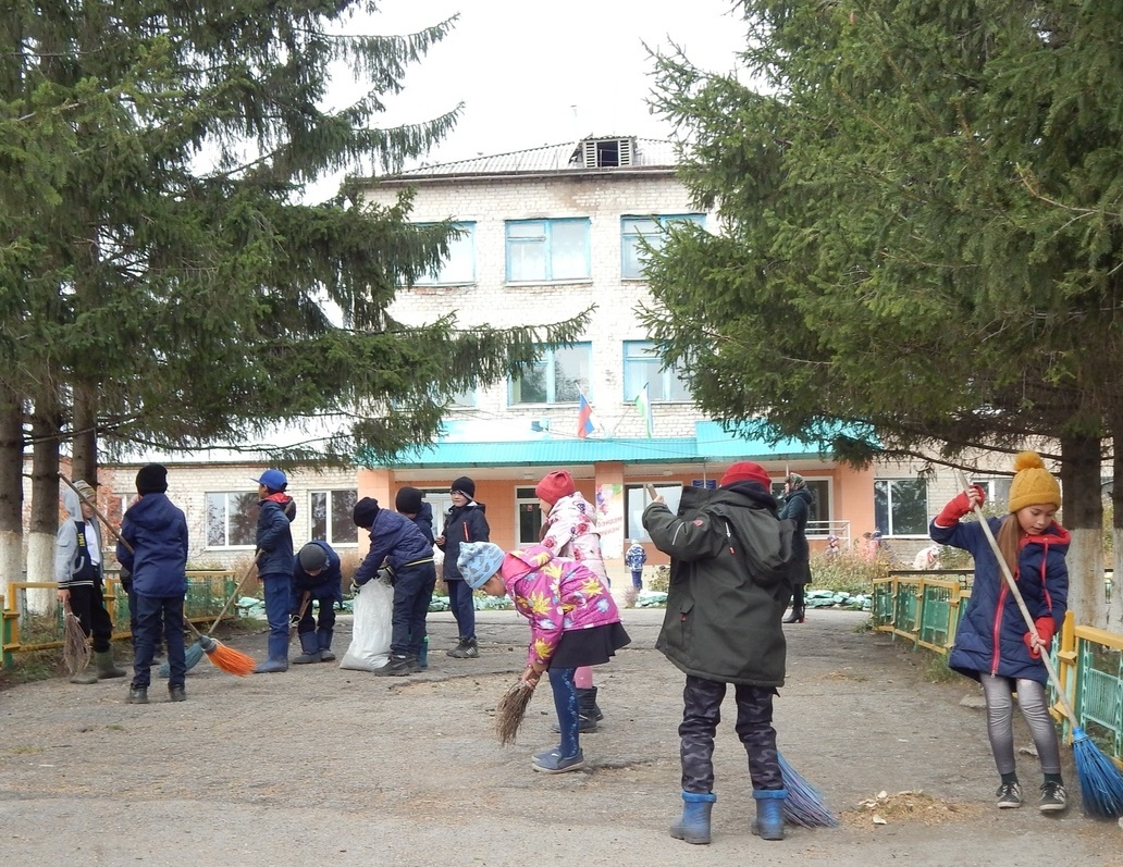 Вооружившись необходимым инвентарем, ребята со своими классными руководителями дружно приводили в порядок школьную территорию, закреплённую за своим классом. Все потрудились на славу!
