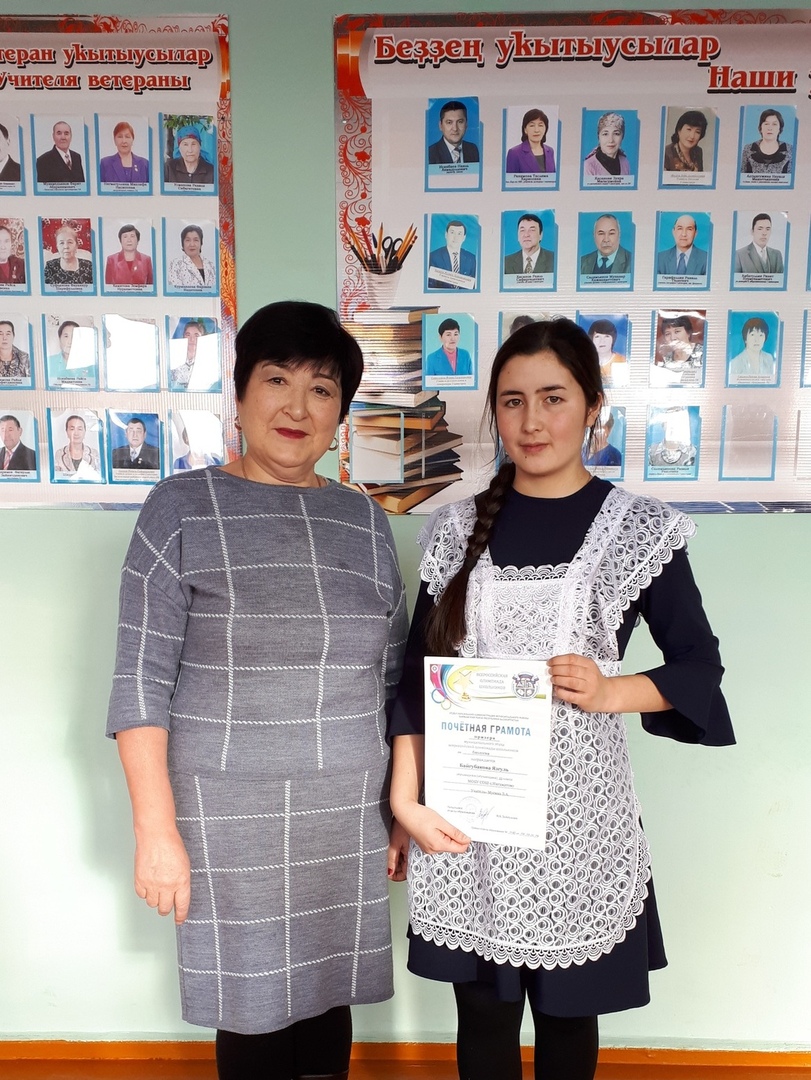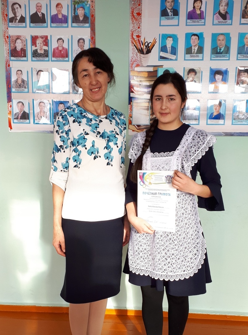 Байгубакова Язгуль- победитель муниципального этапа Всероссийской олимпиады школьников по башкирскому языку (Руководитель Салимьянова Разиля Раилевна) и призер муниципального этапа Всероссийской олимпиады школьников по биологии (Руководитель Мусина Зифа Ахмадулловна).