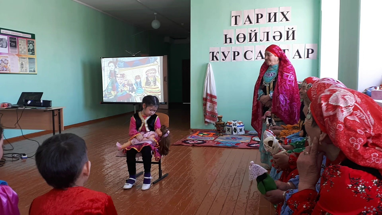 Башланғыс класс ҡыҙҙары үҙҙәренең ҡурсаҡтарына милли күлдәктәр тегеп, күргәҙмә ойошторҙолар. Ҡурсаҡтарҙың тарихына байҡау яһалды, ағинәйҙәр үҙҙәренең тәүге ҡурсаҡтары тураһында хәтирәләре менән уртаҡлаштылар. Байрам уҡыусыларҙың бейеүҙәре, инәйҙәрҙең йырҙары менән аралашып барҙы.